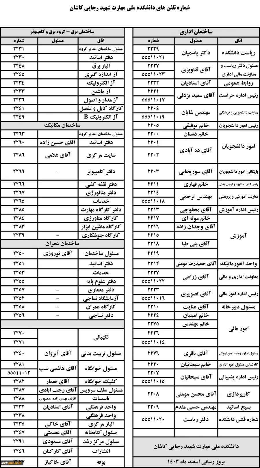 شماره تلفن های دانشگاه 2